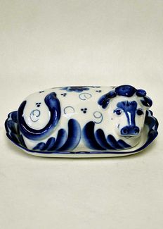 Масленка "Корова". Гжельский фарфор. арт. 0494