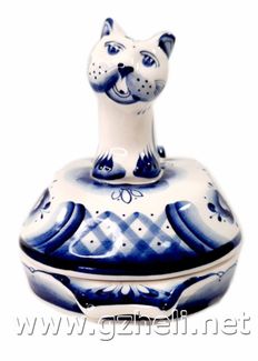 - Маслёнка (ёмкость для хранения масла) "Котик". Гжельский фарфор. арт. 3507 в каталоге Болезни сосудов в Москве;