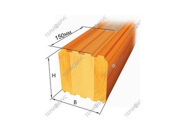 Термобрус представляет собой клеёную конструкцию, состоящую из утеплителя и двух деревянных деревянных ламелей из сосны, ели, кедра, или лиственницы толщиной 40-80 мм. В качестве утеплителя используется экструдированный пенополистирол. Торцы закрываются.