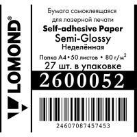 LOMOND 260052 бумага самоклеющаяся полуглянцевая неделённая, 1 часть А4, 85 г м2, 50 листов