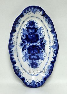 Закажите Блюдо "Рыбное". Гжельский фарфор. арт.1338 у компании Гжель, гжельский фарфор, интернет – магазин подарков и сувениров. в Москве на портале Alloy: