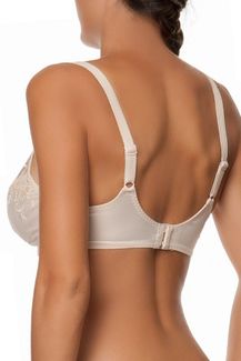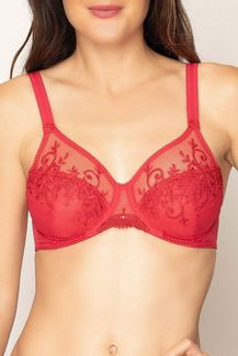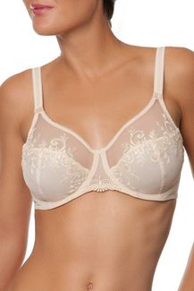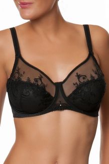 Новый вид бюстгальтера с классическими мягкими чашками на каркасах, с отличным кроем из 3-х частей, который также высоко облегает и поддерживает грудь, вплоть до чашки H. Высокий эстетический результат достигается за счет сочетания изысканной вышивки и великолепного тюля, обеспечивающего визуальную легкость и чистоту линий. Чашки бюстгальтера снабжены подкладкой из прочного материала — залога непрозрачности и поддержки. Визуально яркие чашки с вышивкой гармонично сочетаются со строгими, но стильными бретелями и центральной частью из двойного слоя тюля. None