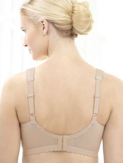 Бюстгальтер без каркасов идеально подходит для женщин с пышной грудью. Мягкие чашки с кружевными вставками сверху и дополнительной внутренней подкладкой снизу, для лучшей поддержки. Обеспечивает полный обхват и плотное прилегание за счет широких боковых панелей. Полномерные чашки для придания естественной округлой формы. Бретели, расширенные спереди, снижают нагрузку на плечи. Они имеют пониженную растяжимость и регулируются на спине. Запатентованный дизайн бюстгальтеров MagicLift обеспечивает непревзойденные посадку, поддержку и комфорт бюстгальтерам с мягкой чашкой без каркасов. None