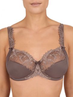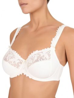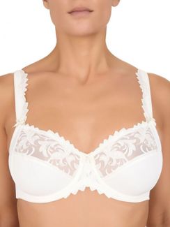 Бюстгальтер с мягкой чашкой на каркасах выполнен из мягкой матовой микрофибры. Чашка с горизонтальным рельефом и боковым подрезом для хорошей поддержки груди. Верхняя часть чашки выполнена из вышивки на сетке с цветочным рисунком. Широкая передняя деталь украшена маленьким атласным бантиком. Боковые детали с мягкими поддерживающими косточками. Широкие регулируемые бретели спереди украшены вышивкой. None