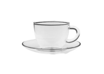 Стеклянная чашка с блюдцем для чая или кофе. Объем чашки 150 мл. None
