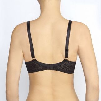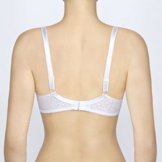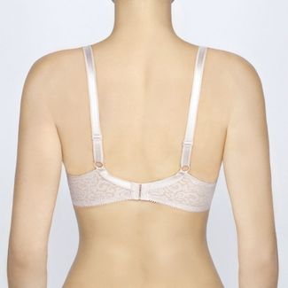 Бюстгальтер с формованными чашками на тонком поролоне, на каркасах. Боковая деталь отрезная. Элегантное эластичное кружево на боковой детали дублировано стабильным, не эластичным полотном, для дополнительной поддержки. Вертикальные косточки на боковых панелях не дают ткани скрутиться на больших размерах, Бюстгальтер декорирован бантиками. Бретель функциональная, с элегантным блеском. None