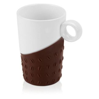 <p>Считается, что для кофейных напитков предпочтительна фарфоровая посуда, поскольку именно она помогает понять весь кофейный букет. <br />Это кружка порадует любителей латте и капучино не только своим объемом, но и силиконовой вставкой с рельефными кофейными зернами. Её очень приятно держать двумя руками и вдыхать аромат кофе, наполняя свою жизнь моментами тепла и комфорта.</p> <p>Цвет: белый/коричневый<br />Материал: фарфор/силикон<br />Вес: 405 г.<br />Размер товара: d81 x d63 x 120 мм.<br />Объем: 370 мл</p> <p>Описание упаковки: картонная коробка белого цвета</p> Наличные, безнал., карты, эл. деньги, юр. лица Возможен самовывоз. Есть доставка.