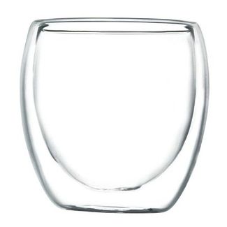 Чаша необжигающая слегка округлой, суженной к низу формы из жаропрочного стекла, с двойными стенками с воздушной прослойкой, сохраняет температуру напитка не проводя тепло на внешнюю поверхность. None