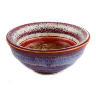 Керамическая пиалка, фиолетово-коричневого цвета, с кленовым листком на донышке. None
