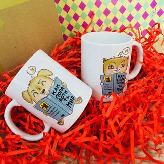 <p>Что можно подарить на 14 февраля? Парные кружки для влюбленных с прикольными рисунками.</p> <p>Кружка керамическая, Емкость 330 мл. Цвет - белый с красной ручкой.&nbsp;Высота - 95мм. Диаметр - 82мм.</p> <p>Коробка подарочная Крафт. Размеры&nbsp;24х21х11 см.</p> <p>Открытка-валентинка "Любовь это..." (мишки), 8 х 7 см</p> <p>Мягкий магнит "Люблю тебя очень", сердечко, 7 х 7 см</p> Предоплата при самовывозе Возможен самовывоз. Есть доставка.