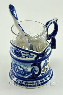 - Подстаканник со стаканом "Домик" резной. Гжельский фарфор. арт. 2797 по выгодной цене 1 450 р. руб.;