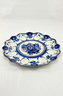 Пасхальница в золоте "Круглая" (тарелка для яиц). Гжельский фарфор. арт. 0966