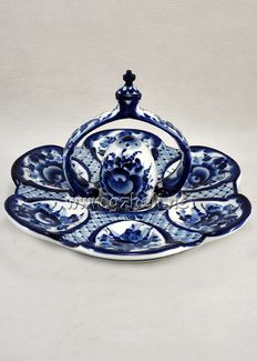 - Пасхальница с солонкой "Казакова" (блюдо для яиц). Гжельский фарфор. арт. 1034 по выгодной цене 2 300 р. руб.;