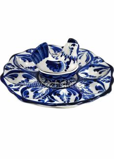 Закажите Пасхальница с солонкой "Курочка" (блюдо для яиц). Гжельский фарфор. арт. 0999 у компании Гжель, гжельский фарфор, интернет – магазин подарков и сувениров. в Москве на портале Alloy: