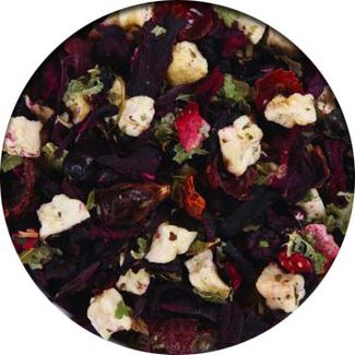 Гибискус, кусочки яблока, изюм, ягоды черной смородины, кожура шиповника, лепестки василька, листья смородины.