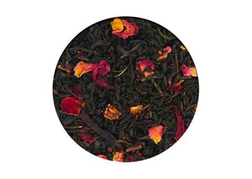 Смесь китайских, цейлонских и индийских черных чаев с добавлением гибискуса, клубники и лепестков розы. None
