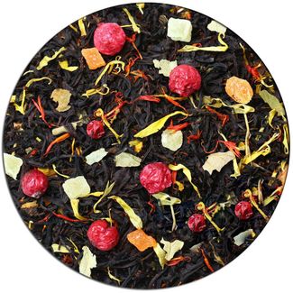Индийский черный чай, кусочки папайи, ананаса, клубники, ягоды красной смородины, лепестки календулы, сафлора, листья смородины. None