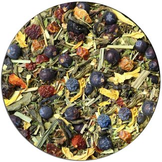 Состав: чай зеленый китайский среднелистовой, плоды можжевельника, плоды шиповника измельченные, листья мяты, листья крапивы, лемонграсс, ягоды черной смородины, лист смородины, лепестки подсолнечника. None