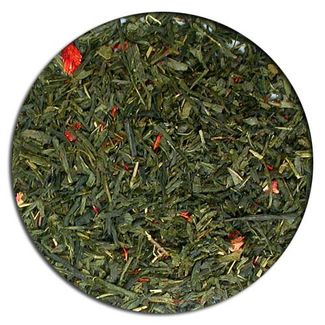 Смесь зеленого китайского чая Сенча и Ганпаудера, кусочки клубники, лепестки сафлора, лепестки календулы, аромат клубники со сливками. None