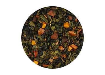 Зеленый чай ганпаудер "Храм неба" с добавлением кусочков какао-бобов и карамели. None