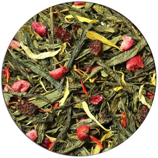 Зеленый китайский чай Сенча, кусочки клюквы, лепестки красного василька, лепестки календулы. None