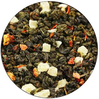 Зеленый чай ганпаудер, кусочки клубники, лепестки сафлора None