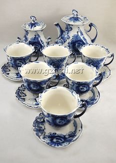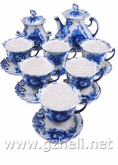 Закажите Сервиз чайный кофейный "Каприз". Гжельский фарфор. арт. 1912 у компании Гжель, гжельский фарфор, интернет – магазин подарков и сувениров. в Москве на портале Alloy: