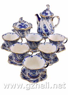 Закажите Сервиз чайный кофейный в золоте "Морской бриз". Гжельский фарфор. арт. 0949 у компании Гжель, гжельский фарфор, интернет – магазин подарков и сувениров. в Москве на портале Alloy: