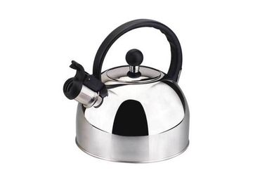 Чайник со свистком, объем 2,5 л, нержавеющая сталь, фиксированная пластмассовая ручка черного цвета None