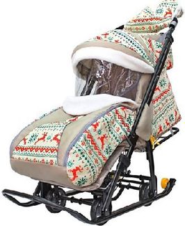 - R-toys Санки-коляска SNOW GALAXY LUXE Белая ночь Олени оранжевые на больших мягких колесах+сумка+муфта по выгодной цене 6 250 р. руб.;