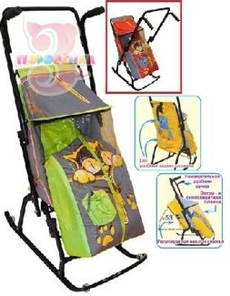 Самый легкий, складной и прочный вид транспорта для зимы - это санки-коляска на полозьях.