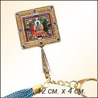 Будда Медицины известен как Будда Исцеления. На этом брелоке изображена его мандала, которая защищает все живые существа от физических и ментальных болезней. А также выгравирована его мантра, которая обладает силой, способной освободить нас от всех