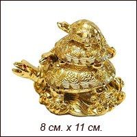 Три черепахи друг на друге символизируют благополучие трех поколений. Особенно хорош этот талисман для семей, которые живут со своими родителями или детьми под одной крышей. Располагать необходимо в северном секторе дома.