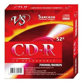 - Диск CD-R VS 700Mb 52x в бумажном конверте, 5шт (VSCDRK501) по выгодной цене 123 р. руб.;