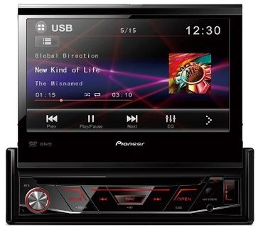 1 DIN магнитола Pioneer, мощность 4x50 Вт, тюнер (FM, СВ), CD, DVD, MP3, MPEG4, WMA, JPEG, поддержка iPod, выход на сабвуфер, разъем USB, многоцветный дисплей, диагональ: 7", сенсорный, 1 DIN None