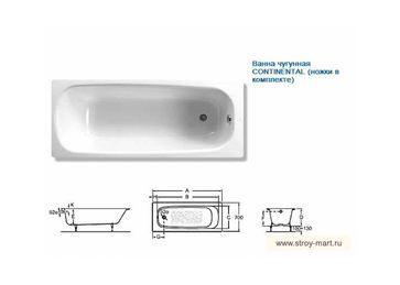- Roca (Рока) CONTINENTAL (ножки в комплекте) 120х70 в каталоге Чугунные литые трубы в Москве;