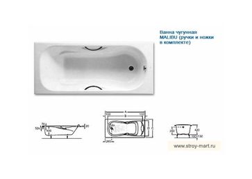 - Roca (Рока) MALIBU (ручки и ножки в комплекте) 170х75 в каталоге Чугунные литые трубы в Москве;