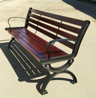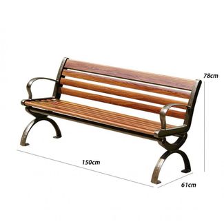 Вес: 40 кг; Размер бруса: 25х60 мм; Высота спинки: 65 см; Глубина сидячего места: 40 см; Материал: чугунное литьё, дерево покрытое лаком; Упаковка: 2 коробки.
