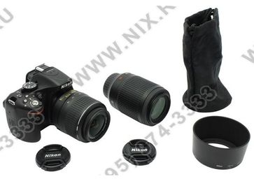 Nikon D5200 18-55VR&55-200VR KIT [Black] (24.1Mpx, 27-300mm, 3x3.6, JPG RAW,SDXC, 3.0,USB2.0,HDMI,AV,Li-Ion)