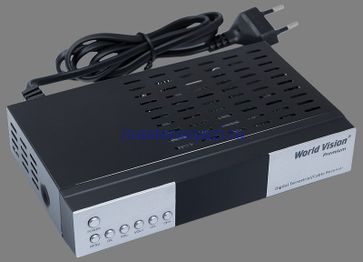 Новый усовершенствованный цифровой эфирный DVB-T/T2 и DVB-C приемник World Vision Premium. Базируется телеприставка на высокопроизводительном процессоре Ali 3821, отличительной особенностью перед другими эфирными телеприставками стали: возможность приёма кабельного телевидения в стандарте DVB-C, возможность просмотра интернет медиа через приложения YouTube и Web TV, наличие встроенного ВЧ модулятора для передачи ТВ сигнала, наличие цифрового коаксиального аудио выхода. Корпус устройства металл, лицевая панель имеет стильный внешний вид и расширенный набор кнопок управления функциями телеприставки, в середине лицевой панели расположен светодиодный дисплей для отображения номера канала и текущего времени. None