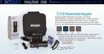 - Xtar Xtar D08 Warlus — Подводный видеосвет для любителей дайвинга по выгодной цене 14 900 р. руб.;