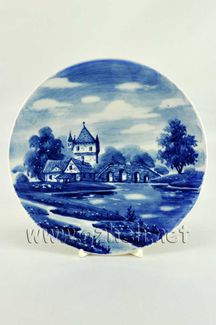 Закажите Плакетка (тарелка настенная) "Пейзаж. Архитектура". Гжельский фарфор. арт. 2685 у компании Гжель, гжельский фарфор, интернет – магазин подарков и сувениров. в Москве на портале Alloy: