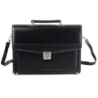 - Портфель из натуральной кожи, 39х31,5х12,5 см, 2 отделения, замок с ключом, черный в каталоге Деловые сумки и портфели в Москве;