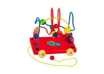 Для детей 1-3 года Лабиринт - отличная игрушка для развития мелкой моторики. Кроме того, игра в Лабиринт развивает пространственное мышление. На основании Лабиринта прикреплены 3 цветные проволоки, изогнутые в разных плоскостях. Проволоки статичны, сгибать их нельзя. По каждой проволоке можно перемещать деревянные фигурки. Фигурки разного цвета и формы. Во время игры не забывайте называть малышу цвета "дорожек" и фигурок. Считайте, сколько фигурок переместили. К основанию Лабиринта прикреплены колеса и веревочка, за которую его можно возить, что делает его еще более привлекательным для ребенка.