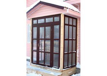 Материал для изготовления - массив сосны или клееный брус сосны.Сечение профиля 58х70 мм.Стеклопакет одно- или двухкамерный толщиной 24 мм. Покраска - Фортеколор(Россия). Фурнитура - Roto NT(Германия).Уплотнитель - на клеевой основе.