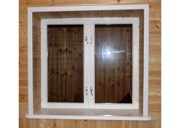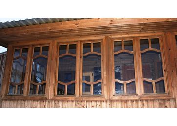 Окна с раздельными и спаренными створками, террасные окна - предназначены для домов дачного типа. Изготавливаются из массива сосны. Имеют двойное или одинарное остекление. Покрытие - Фортеколор (Россия).