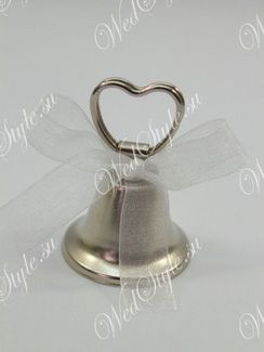 Держатель для банкетной карточки в форме колокольчика, украшенного лентой (Z-1413-0010) STA114 Держатели для карточек принято использовать на больших банкетах, где собирается двадцать и более человек. С их помощью банкетная карточка приподнята и хорошо зафиксирована, каждый гость легко сориентируется и найдет нужное место. Оригинальный держатель для карточки "Колокольчик" (Z-1413-0010) STA114 удерживает карточку с помощью зажима-сердечка. Если колокольчик потрясти, то он начинает звенеть. Банкетный аксессуар изготовлен из металла, сверху перевязан тонким прозрачным бантом. Предложенную модель держателя используют на банкетах, посвященных дню бракосочетания, венчания, юбилейного дня рождения. Мин. заказ 500 руб.