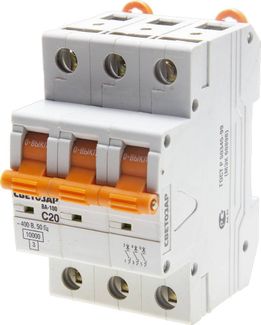 Выключатель автоматический СВЕТОЗАР 3-полюсный, 20 A, "C", откл. сп. 10 кА, 400 В