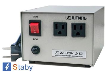 Понижающий трансформатор на 110 вольт для подключения импортных бытовых приборов (американские и европейские с работой от сети 110В). Мощность: 1 кВА Мощность: ВА Официальный дилер. Безнал, карта, наличные. Есть доставка.