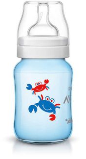 Бутылочка Avent"Крабы"голубая, PP, 260 мл, сил. соска, медл. поток, 1+, 1 шт., арт. 80036